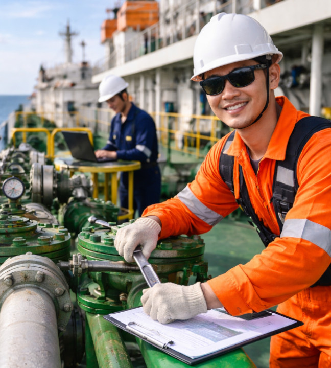 Technical briefings and operational preparation aligned with vessel requirements and company standards.